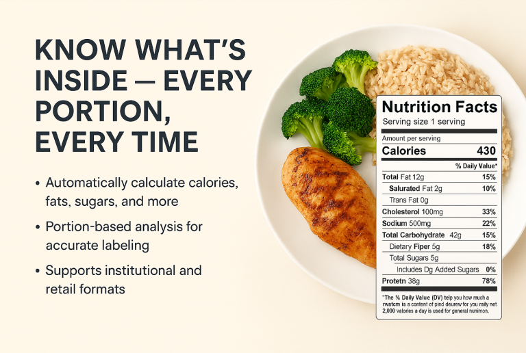 Whether you're serving meals in bulk or packaging retail-ready products, our platform ensures every portion is backed by accurate data.